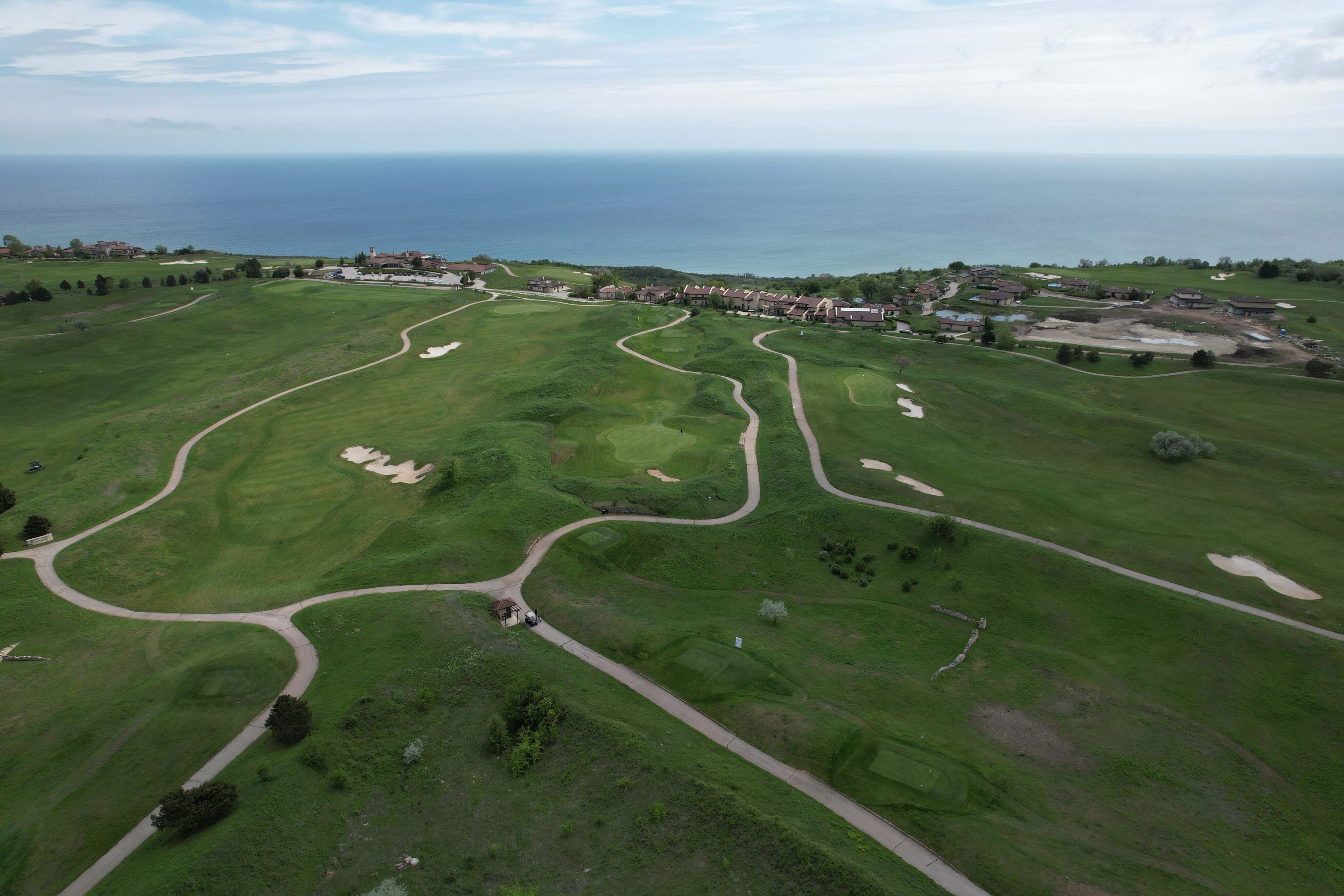 Herzstück ist der 18-Loch-Championship-Golfplatz von Gary Player, der erste Signature-Platz Bulgariens. Das hügelige Layout verläuft hoch über dem Meer, viele Bahnen öffnen sich Richtung Küste und werden spürbar vom Wind beeinflusst. Strategisch platzierte Bunker, großzügige Greens und deutliche Höhenunterschiede sorgen für ein anspruchsvolles, dabei faires Spiel mit ständigem Meerblick.