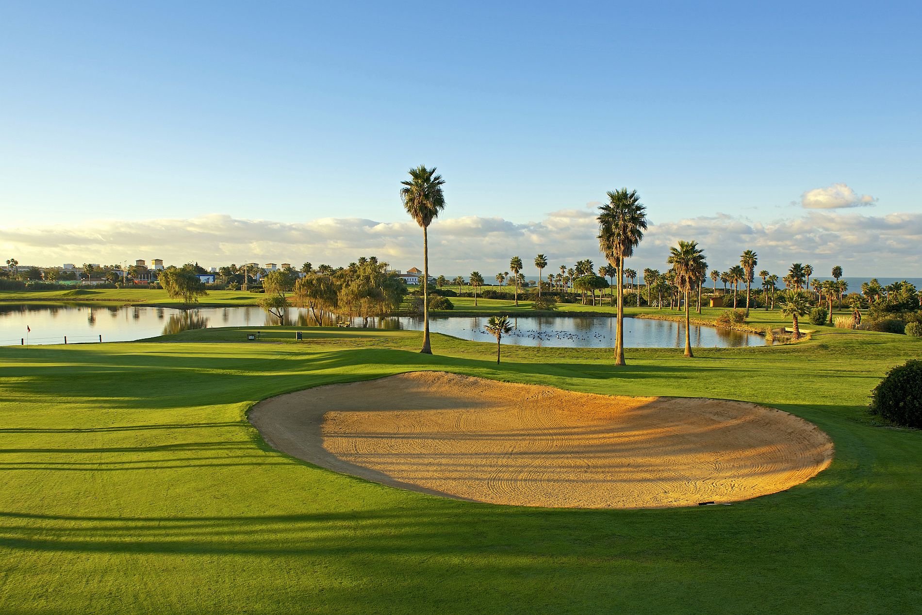 Direkt am kilometerlangen Sandstrand gelegen, überzeugt das Iberostar Waves Royal Andalus mit heller, moderner Architektur, weitläufiger Pool- und Gartenanlage sowie einem vielfältigen All-Inclusive-Angebot. Drei Restaurants – darunter ein andalusisches À-la-carte-Lokal und ein Beachclub – sorgen für kulinarische Abwechslung. Die stilvollen Zimmer bieten teils herrlichen Meerblick, das Sport- und Aktivprogramm ist breit gefächert. Direkt am Hotel liegt der 36-Loch-Golfplatz Real Novo Sancti Petri: Der A-Course („Mar y Pinos“) führt in spektakulärer Szenerie durch Pinienwald und Dünen bis ans Meer; der B-Course („Centro“) begeistert mit gepflegten Fairways, Wasserhindernissen und weiten Ausblicken auf die Küstenlandschaft – ein Highlight für Golfer jeder Spielstärke.